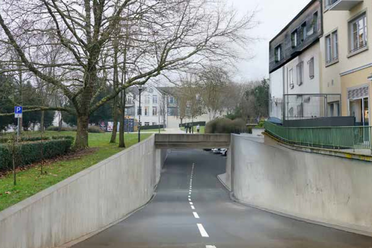Anmutung der Zufahrtsschlucht zur Tiefgarage