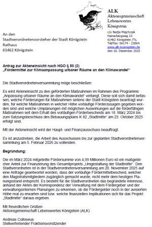 Die Aktionsgemeinschaft Lebenswertes Königstein beantragt die Einrichtung eines Akteneinsichtsausschusses zu den